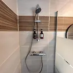Visitors of the apartment will enjoy the comfort of a bathroom with towels. Moreover, there is a walk-in shower and a separate toilet as well.